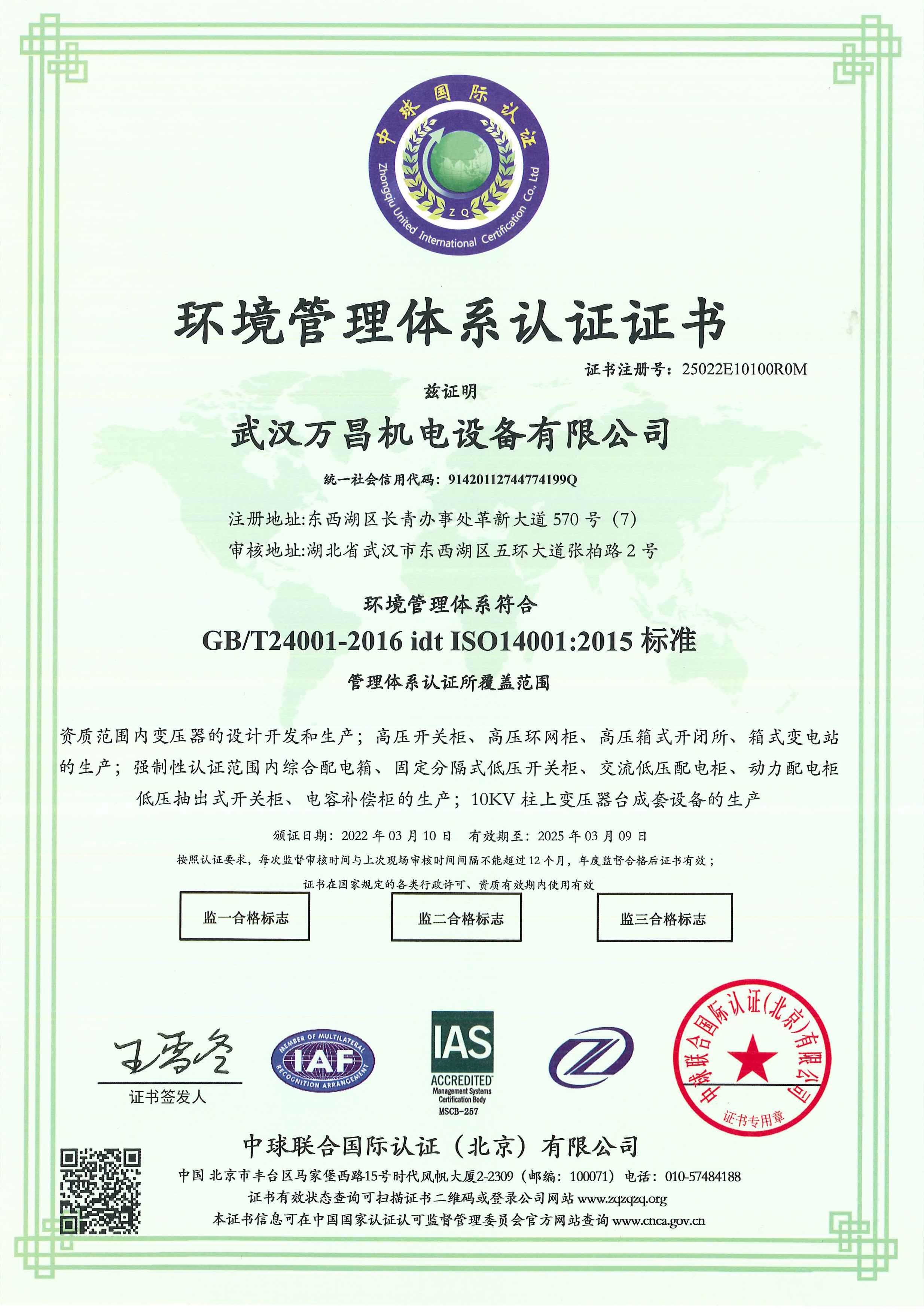 - 環(huán)境管理體系認(rèn)證證書