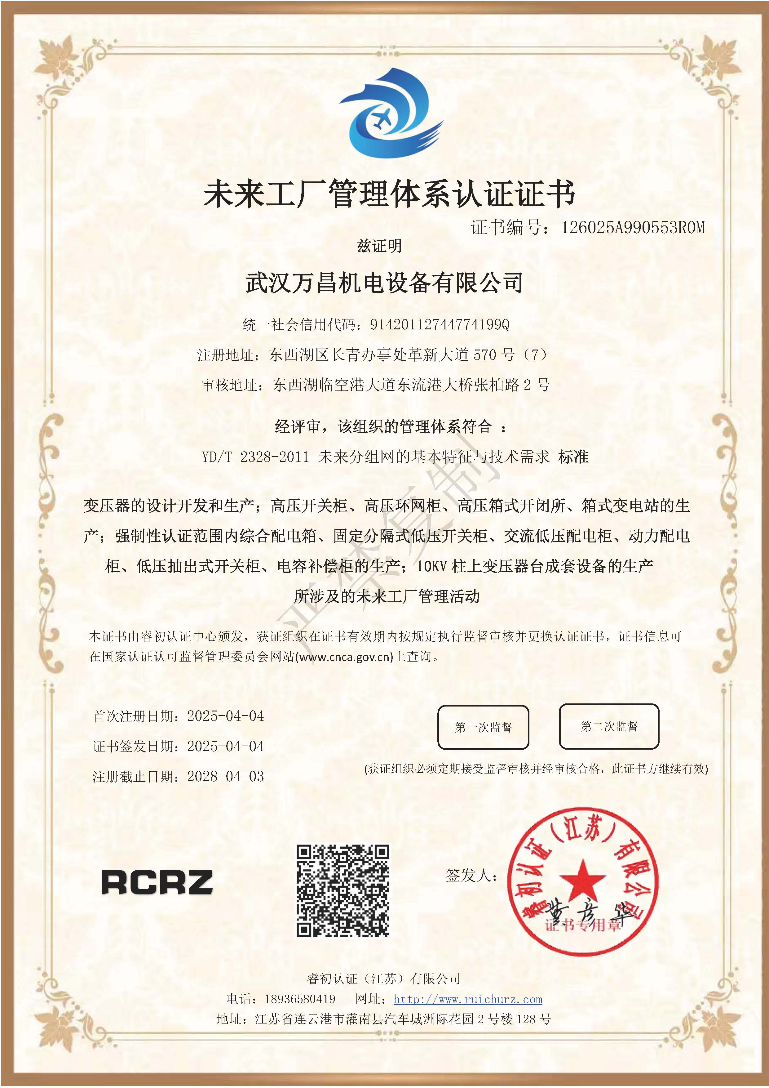 未來(lái)工廠管理體系認(rèn)證證書(shū)